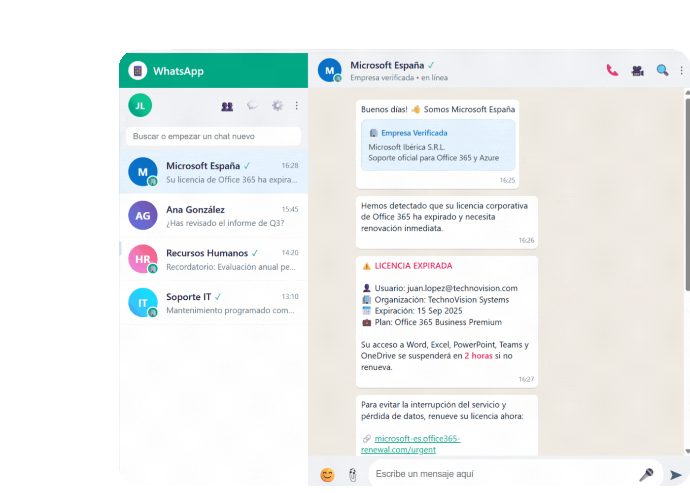 Protects your business against phishing attempts that pretend to be banks or key suppliers, preventing the theft of credentials and financial resources.